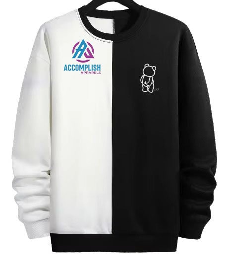 accomplishapparels.com presents Sweatshirt for men/women made of cotton/ polyester/ Spandex material breathable quick dryer wrinkle free fabric, available in all sizes with customized digital printing, sublimation, screen printing, emboss printing, metal foil printing, high-density printing, heat transfer, crackle printing, reflective printing moreover satin stitching, silk printing, normal embroidery, 3d embroidery, heat transfer print, customized company logos, patches, badges, labels can be added as requirement.